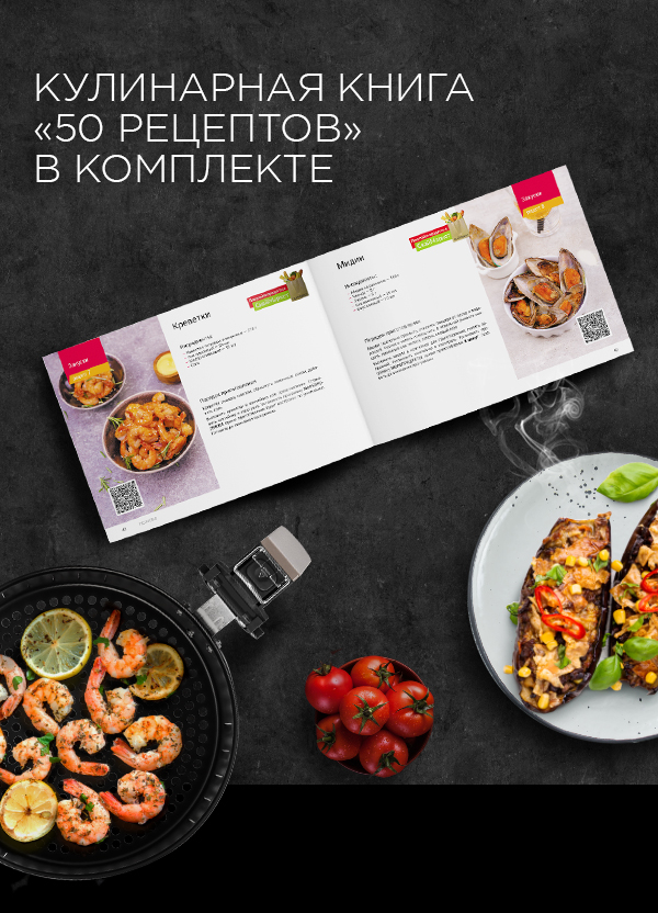 Готовьте картофель фри, ребрышки, морепродукты, выпечку, куриные крылышки, стейки и рыбные блюда с помощью 7 автоматических программ. Поместите ингредиенты в мультипечь и выберите нужную программу, остальное устройство сделает за вас – настроит нужную температуру и установит время приготовления.