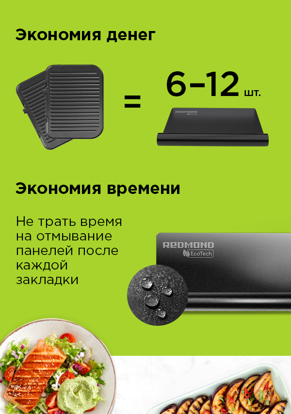 Мультипокрытие REDMOND EcoGlass. Береги природу! Используй сменные покрытия.
