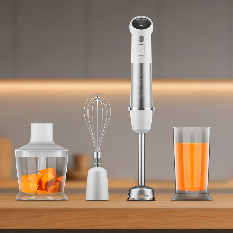 BH440 совмещает в себе функции блендера, измельчителя и миксера. С его помощью вы легко приготовите пышный омлет, однородный фарш и освежающий коктейль. Один прибор заменяет сразу несколько кухонных устройств, экономит место и время на приготовление различных блюд.