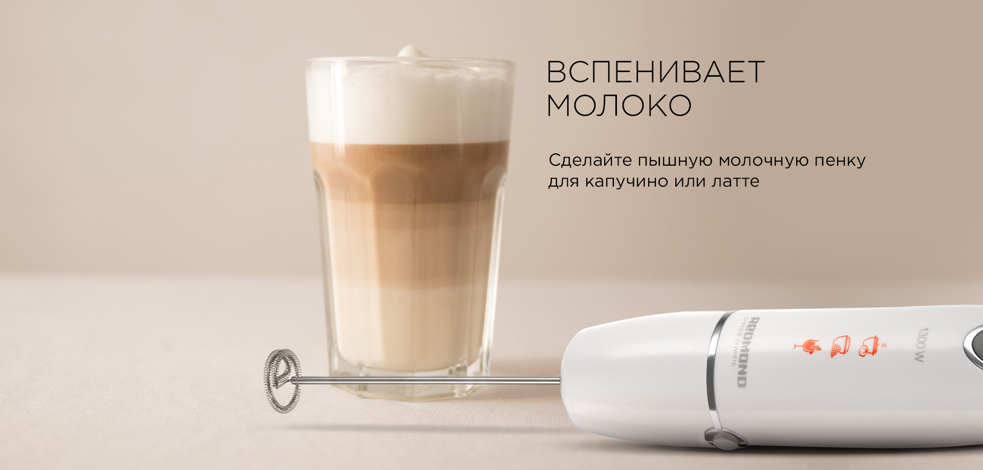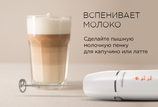 • Насадка-вспениватель взбивает молоко в пышную стойкую пенку для капучино или латте.