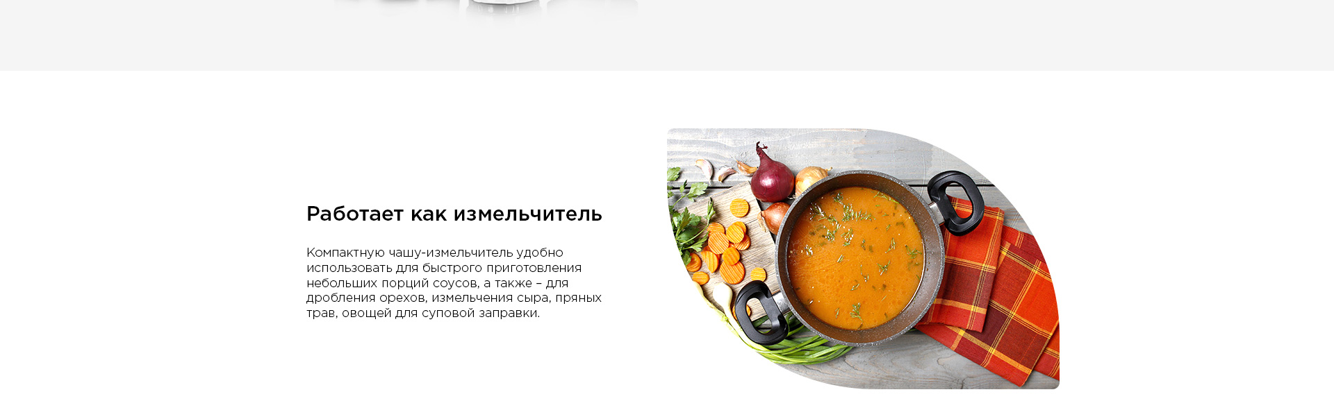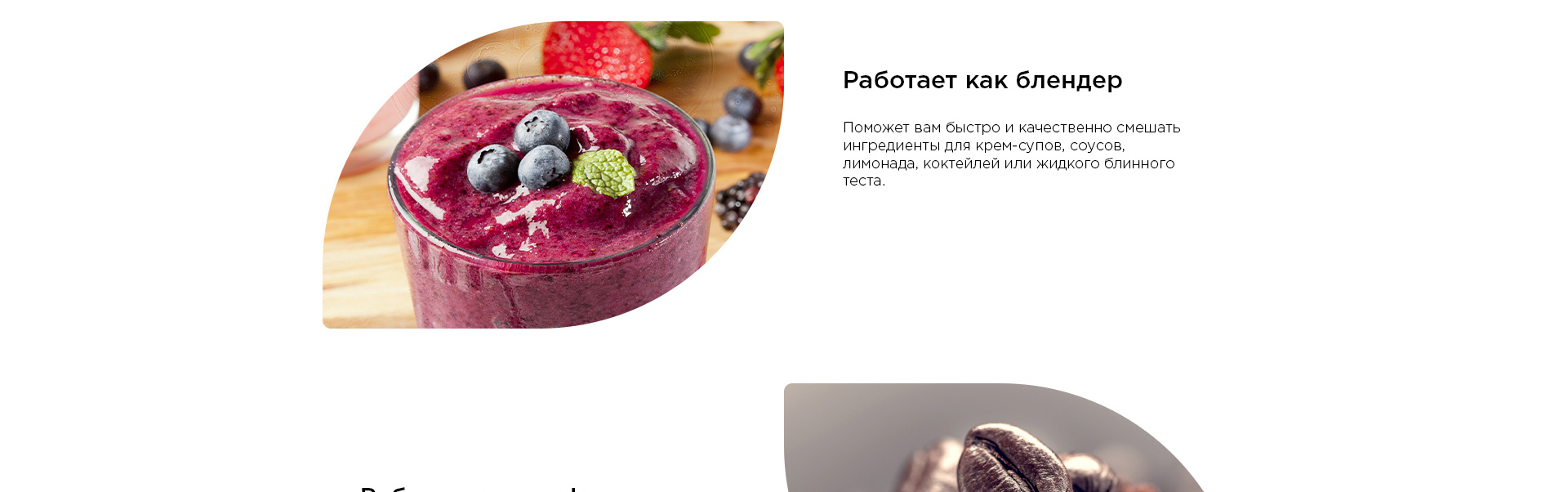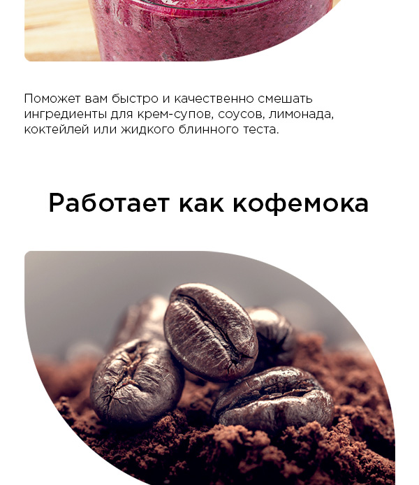 С помощью насадки-кофемолки вы за несколько секунд измельчите кофейные зерна для приготовления бодрящего напитка. RSB-M3422 позволит каждый день баловать себя восхитительным свежемолотым кофе, который максимально раскрывает богатый насыщенный вкус и аромат.