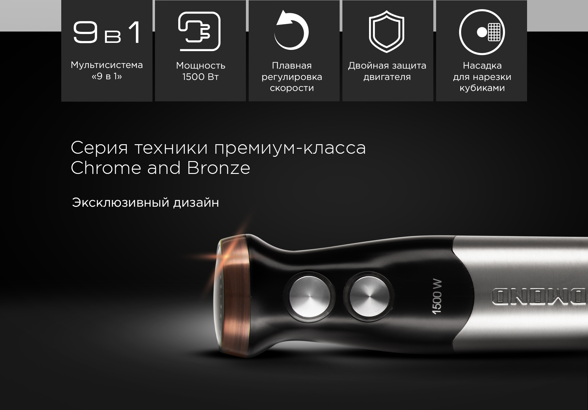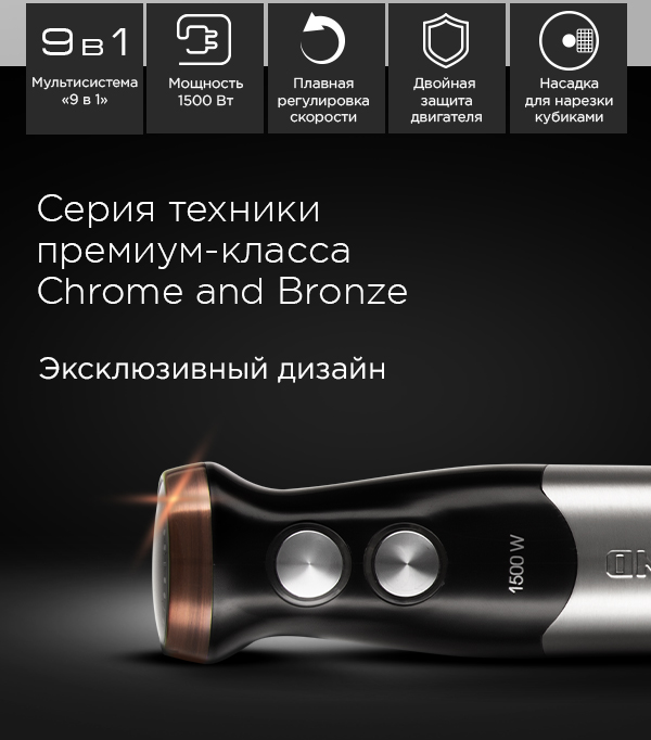 RHB-CB2988 включен в коллекцию техники премиум-класса Chrome&Bronze. Корпус модели дополнен вставками бронзового цвета, подчеркивающими роскошный дизайн устройства.
