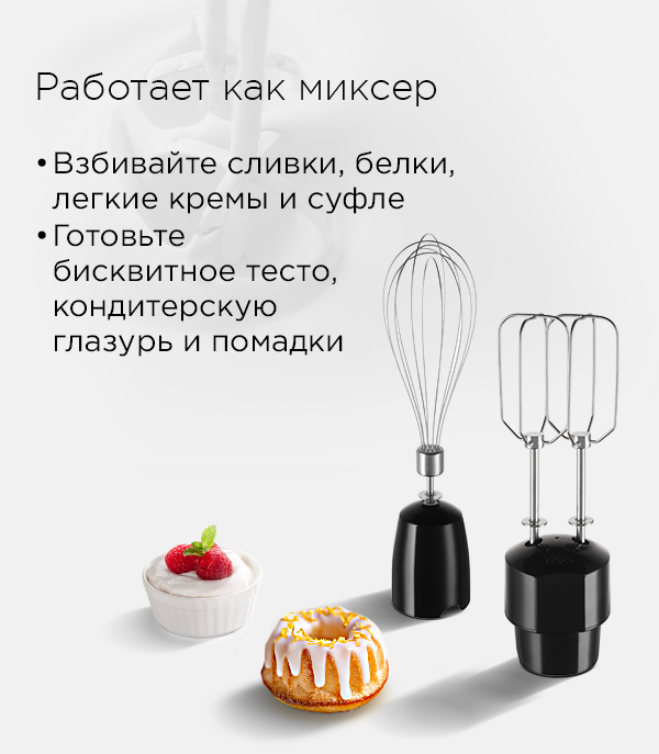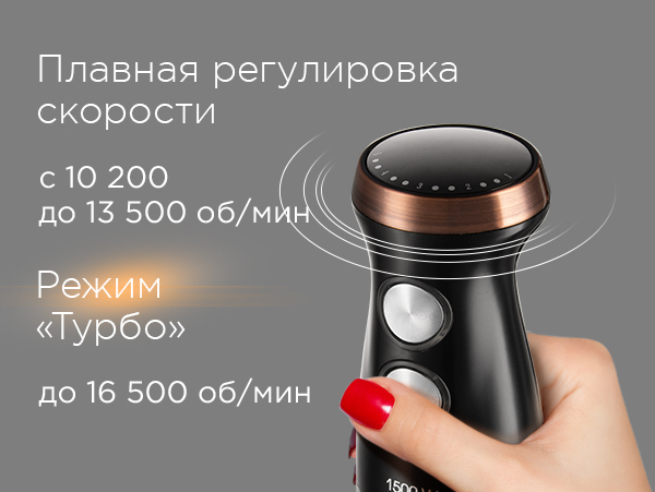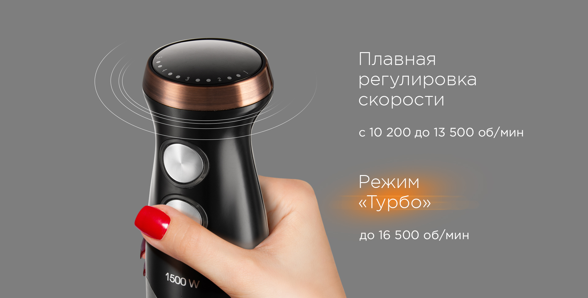 Кратковременное увеличение скорости вращения насадок до 16 500 об/мин позволит разбить самые твердые кусочки овощей, комочки муки в тесте, а также поможет сделать текстуру напитков и блюд более однородной.