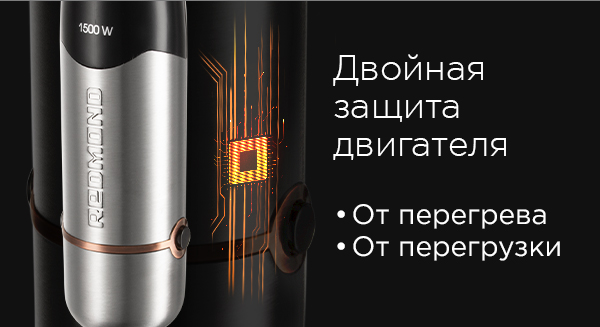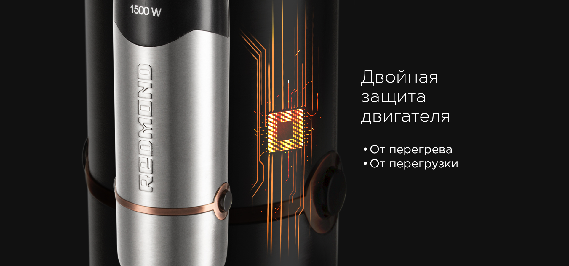 Благодаря системе защиты двигатель прибора не выйдет из строя при перегреве и перегрузке. Если в процессе работы мотор нагреется до критических значений, RHB-CB2988 автоматически выключится. После полного остывания устройство будет готово к работе.