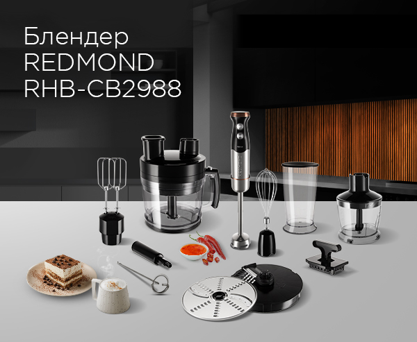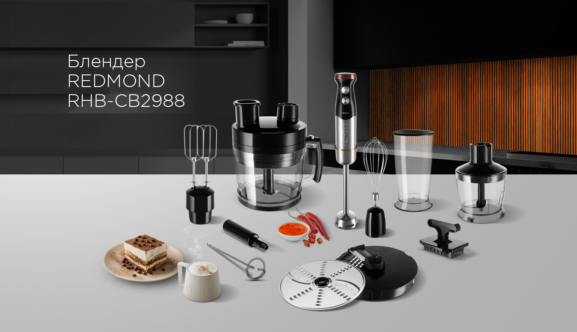 Блендер REDMOND RHB-CB2988 – это мощная многофункциональная мультисистема «9 в 1», созданная для наиболее удобного и быстрого выполнения практически любых кулинарных задач. RHB-CB2988 с широким выбором сменных насадок поможет сэкономить ваше время и силы – за считаные минуты он нашинкует, измельчит, смешает и взобьет ингредиенты для любимых блюд и напитков. Кроме того, в комплектацию модели входят насадка-вспениватель и насадка для нарезки кубиками.