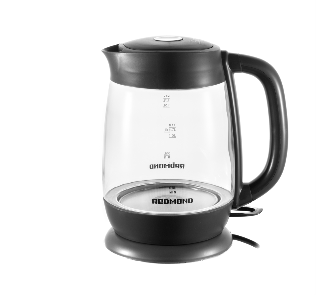 Чайник REDMOND RK-G154 выполнен из экологичного материала – жаропрочного стекла. При нагреве он не выделяет токсичных веществ и неприятного запаха. При включении стеклянный корпус подсвечивается голубым цветом. На колбе чайника предусмотрена шкала, чтобы вам было удобно регулировать уровень воды. Объем RK-G154 1,7 л – горячего чая хватит для большой семьи или компании.