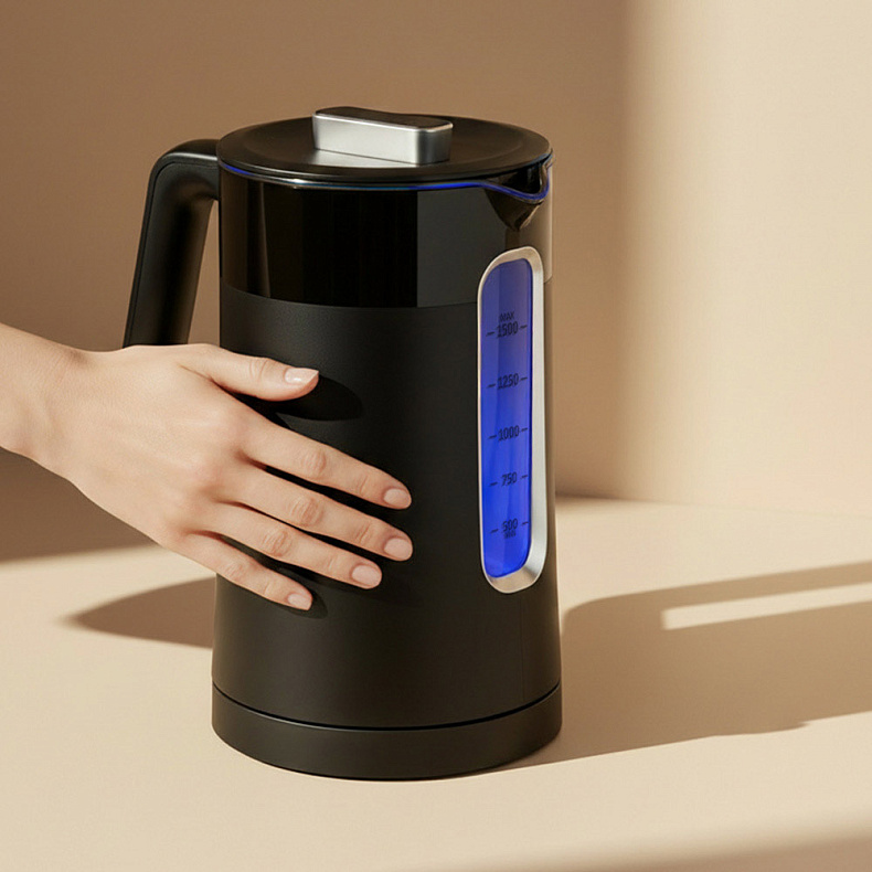 Экологичная колба выполнена из жаропрочного стекла и пищевой нержавеющей стали AISI 304, которая безопасна для здоровья. Вода не контактирует с пластиком, поэтому вы получаете чистый, натуральный вкус без посторонних запахов. Такие материалы устойчивы к образованию накипи и легко очищаются, сохраняя чайник опрятным и долговечным.