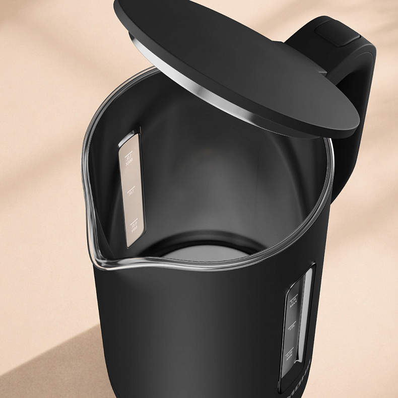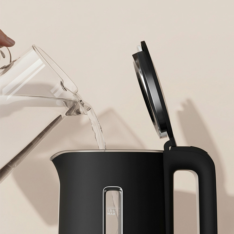 Чайник удобно наполнять из фильтра или кувшина. Крышка широко открывается и не будет мешать: вы легко очистите внутреннюю часть прибора обычной губкой.
