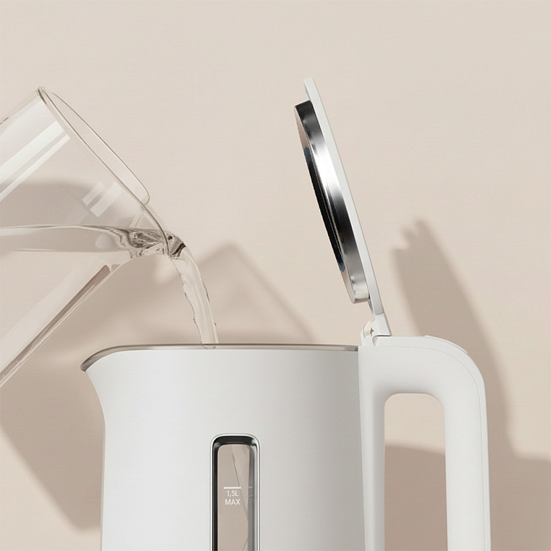 Чайник удобно наполнять из фильтра или кувшина. Крышка широко открывается и не будет мешать: вы легко очистите внутреннюю часть прибора обычной губкой.