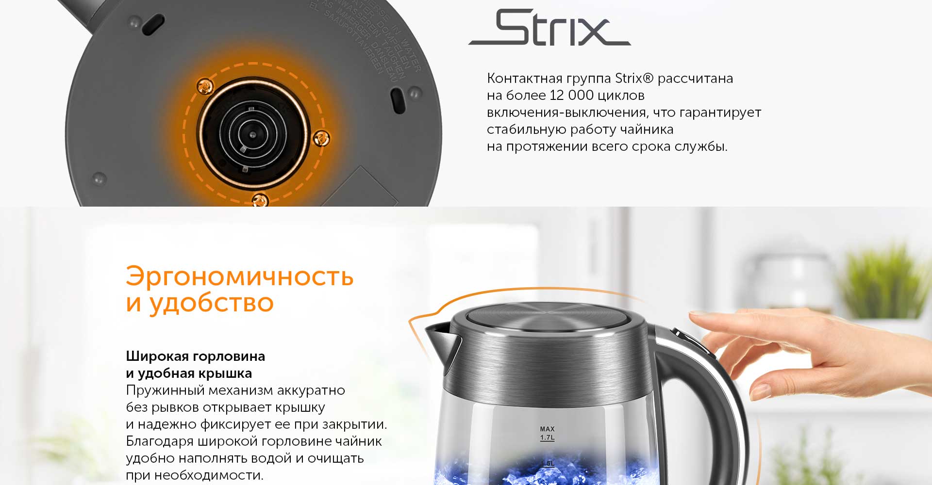 **Британская компания Strix® зарекомендовала себя во всем мире как производитель безопасных контроллеров и контактных групп для электрических чайников различных брендов. Качество деталей Strix подтверждено международными сертификатами и тестами.