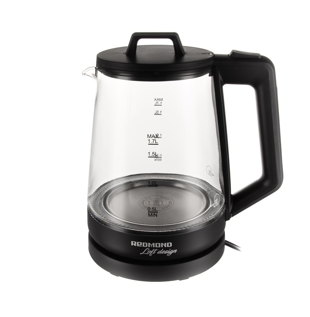 Колба чайника выполнена из экологичного жаропрочного стекла, которое отлично переносит высокую температуру, и при нагреве не выделяет посторонних запахов и не портит вкус воды. Объем колбы — 1,7 л. Этого количества хватит, чтобы устроить чаепитие для всей семьи или компании друзей.
