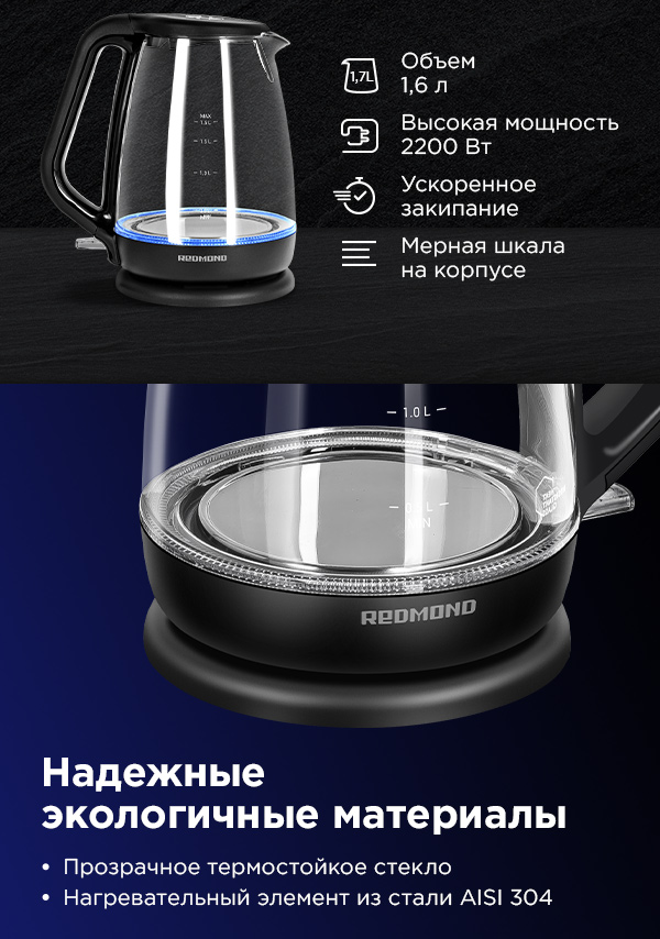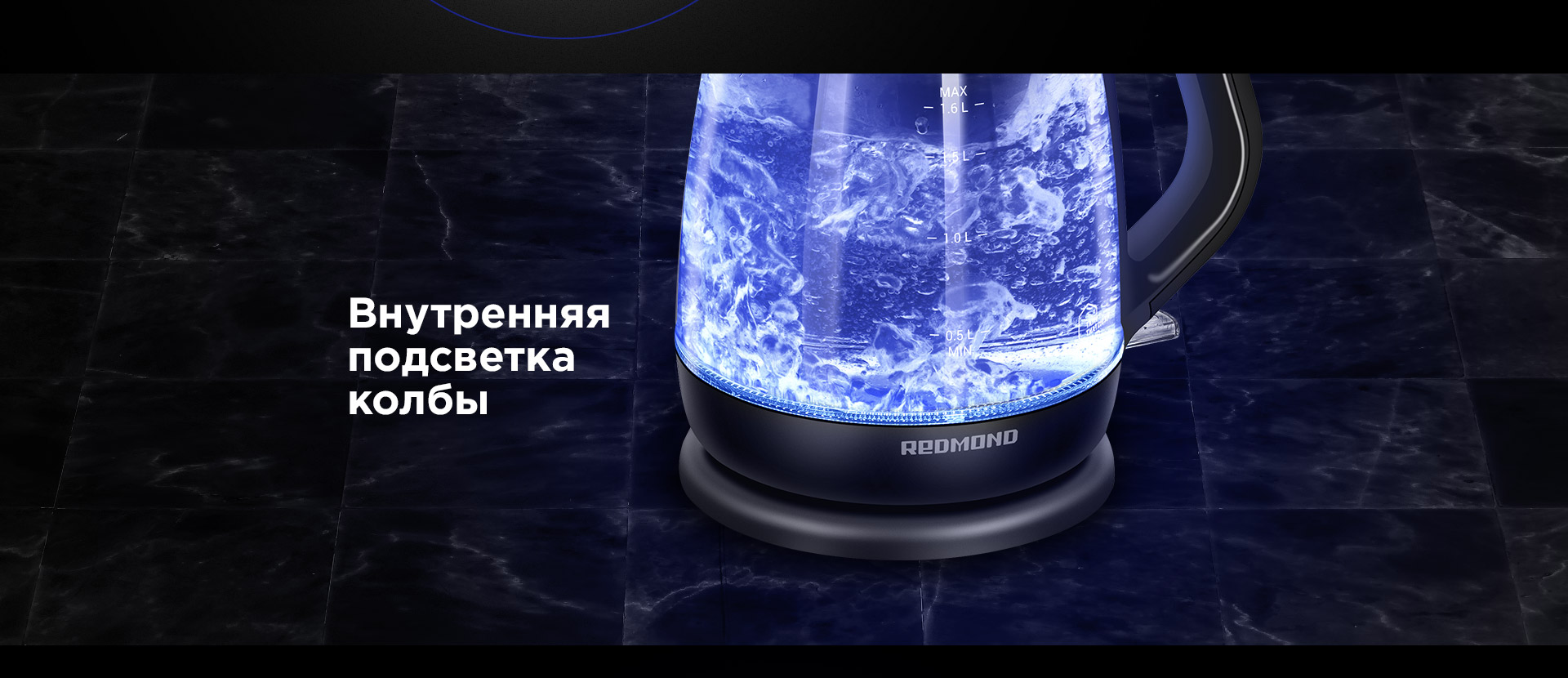 Чайник REDMOND RK-G192 – это новая высокотехнологичная модель от REDMOND с корпусом из термостойкого стекла и голубой подсветкой.