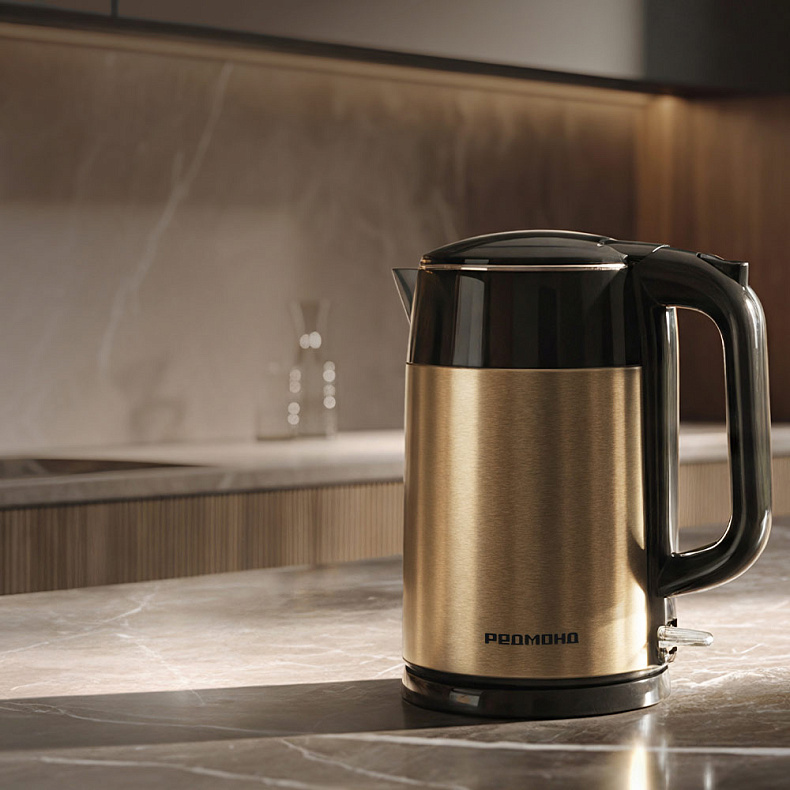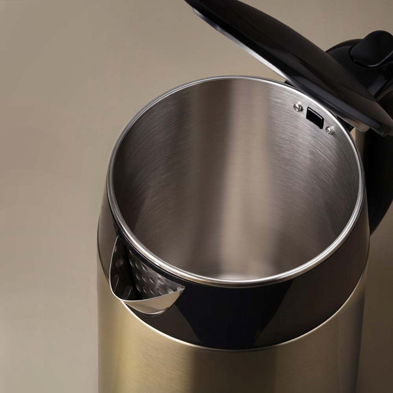 Чайник с прочной цельнометаллической колбой отличается высокой надежностью: не протечет и долго прослужит. Изнутри нанесена мерная разметка, чтобы вы могли контролировать количество воды.