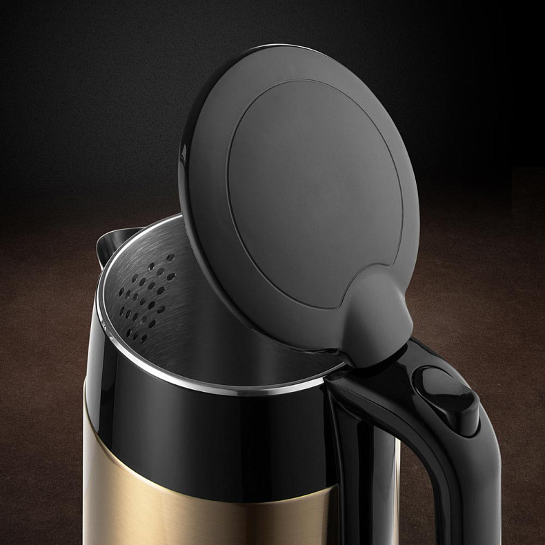 Чайник удобно наполнять и мыть благодаря широкой горловине и откидной крышке. Крышка не будет мешаться, пытаясь закрыться, пока вы наливаете воду или очищаете чайник от накипи.