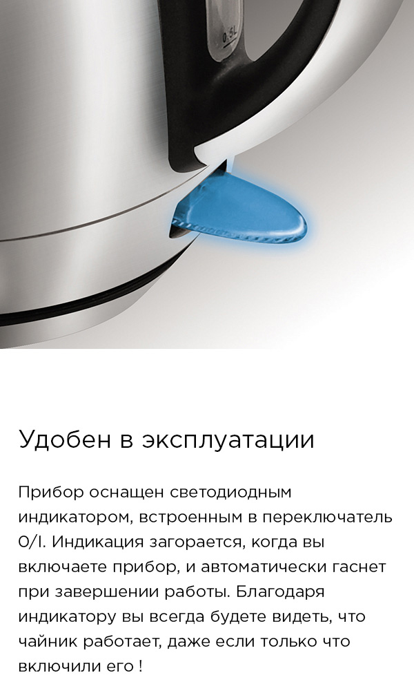 я его называю капсула где чай. Маленький, обтекаемый и из пищевой нержавейки сделанный корпус. А в этом чайнике еще и цельный корпус без окошка для уровня жидкости - это надежнее. И контакт от известной фирмы. Крутой чайник, на мой взгляд.