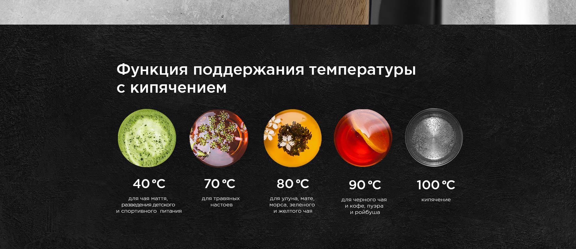 | Функция поддержания температуры с кипячением | 40, 70, 80, 90, 100°C |