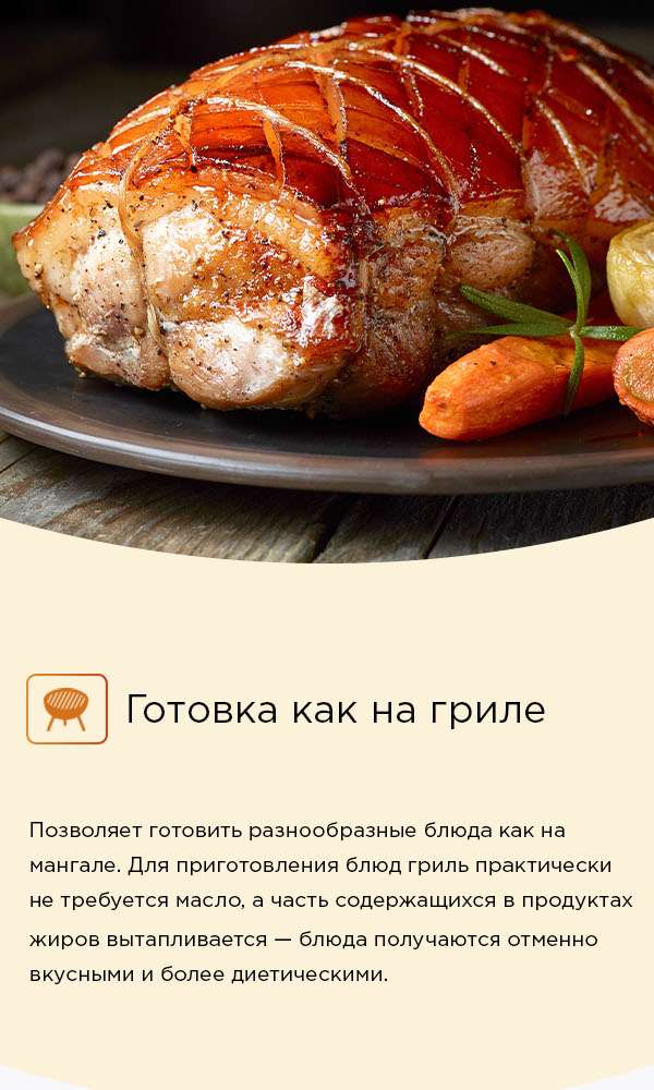 Кроме классического противня с антипригарным покрытием, в комплекте с мини-печью идет удобная решетка для гриля, на которой можно готовить полезные блюда с минимальным количеством масла.