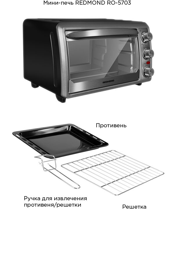 Также вместе с мини-печью RO-5703 вы получаете красочную книгу рецептов с аппетитными иллюстрациями.