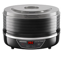Сушилка сочетает вместительность 25 литров и компактные габариты. Ширина корпуса — 33 см, высота — 34,6 см, поэтому прибор легко разместится на кухонной столешнице и гармонично впишется в интерьер. При этом внутри достаточно пространства, чтобы приготовить запас сушеных фруктов или грибов сразу для всей семьи.