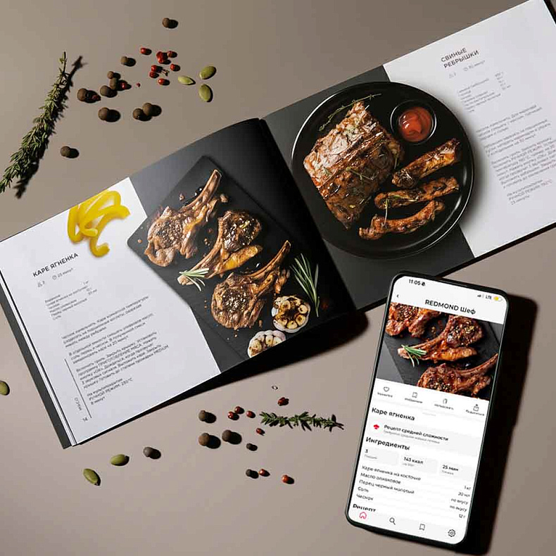 Фирменное приложение REDMOND Шеф и эксклюзивная книга рецептов для GM300 дают возможность готовить разнообразные блюда дома. Подробные инструкции помогают повторять рецепты, делая сложные кулинарные эксперименты доступными для каждого. В приложении собрано более 20 тысяч рецептов для разных устройств, поэтому вы сможете экспериментировать на кухне каждый день.