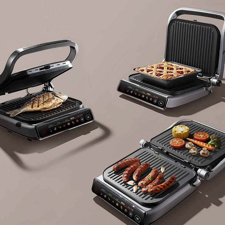Гриль оснащен программами для мяса, рыбы, птицы, котлет, сосисок, бекона и разогрева. Быстрый нагрев и равномерное распределение тепла обеспечивают идеальный результат без необходимости постоянного контроля. Если ужин остыл, вы легко доведете его до температуры подачи.