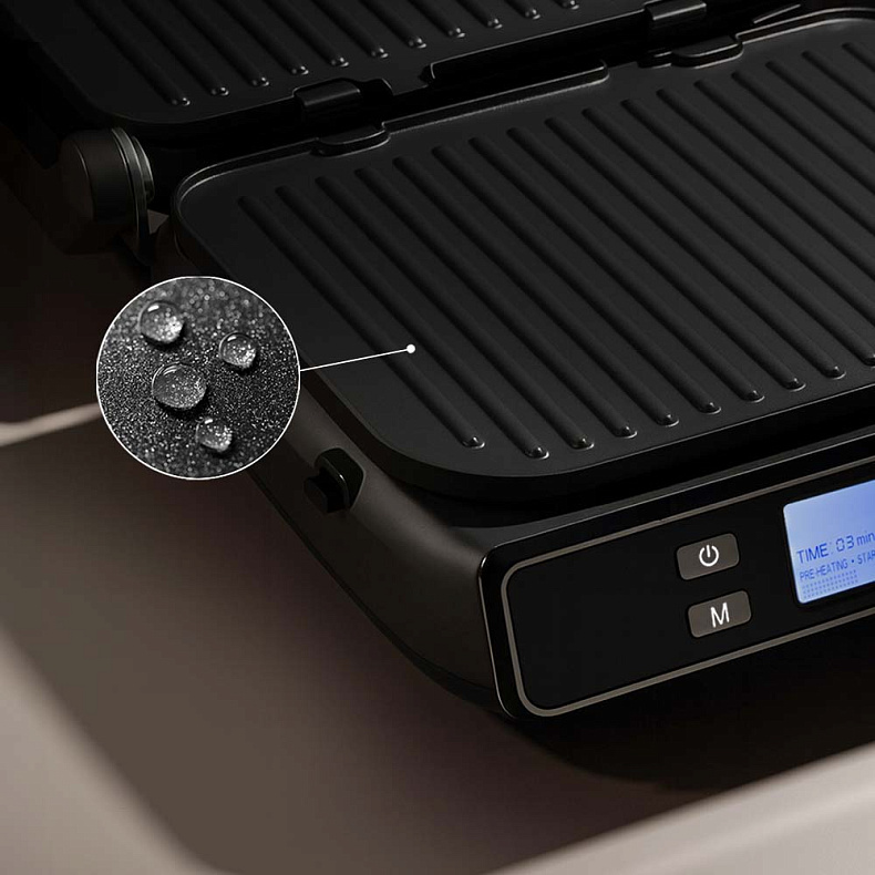 Съемные панели и лоток для сбора жира можно мыть в посудомоечной машине, что сэкономит ваше время и силы. Покрытие панелей не боится перепадов температуры и долго сохраняет антипригарные свойства.