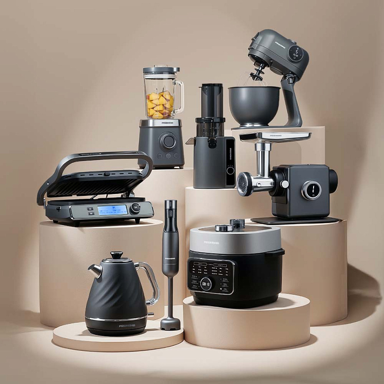 Элегантная коллекция Gray создана для тех, кто ценит современный стиль и технологичность. Приборы выполнены в универсальном сером цвете, который гармонично вписывается в любой интерьер кухни. В серию входят: гриль GM303 и GM301, кухонная машина FM615, блендер BH403, чайник KM246, соковыжималка J1405, мясорубка MG503, блендер BS410 и мультиварка-скороварка MP112 — все, что нужно для создания функционального и стильного кухонного пространства.