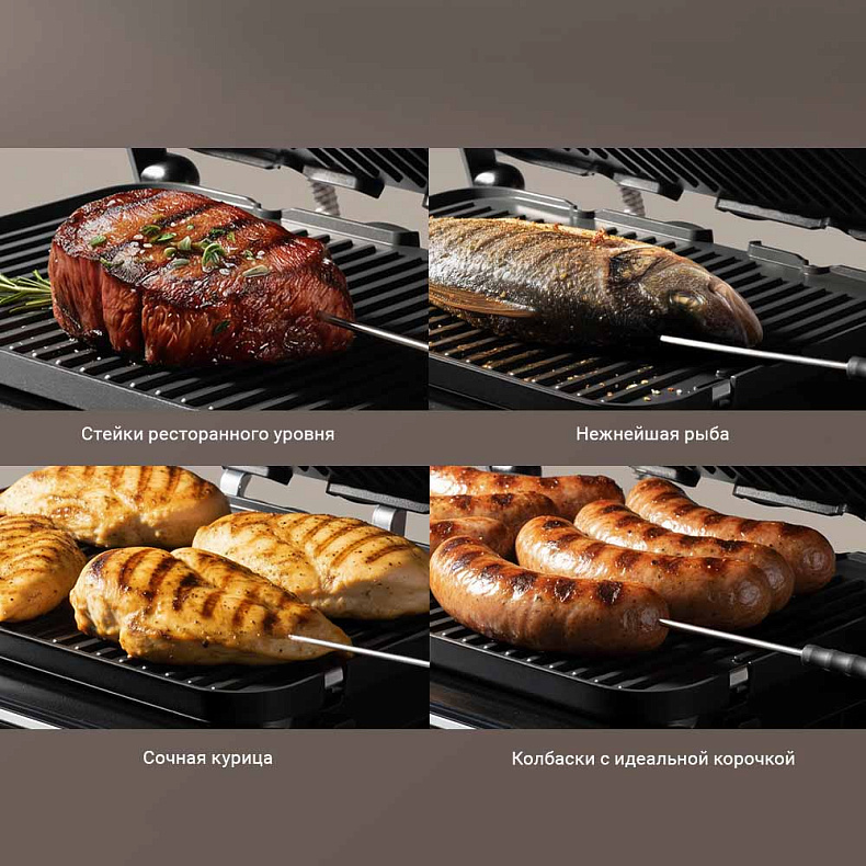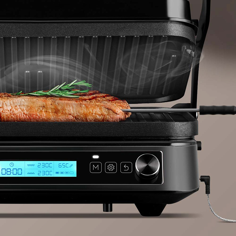 Нежнейшая рыба, сочная курица, колбаски с идеальной корочкой — без необходимости следить за временем или другими параметрами. GrillSense ориентируется на оптимальные значения в зависимости от выбранной программы. Идеальный результат гарантирован.