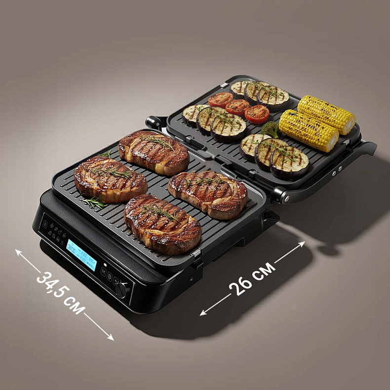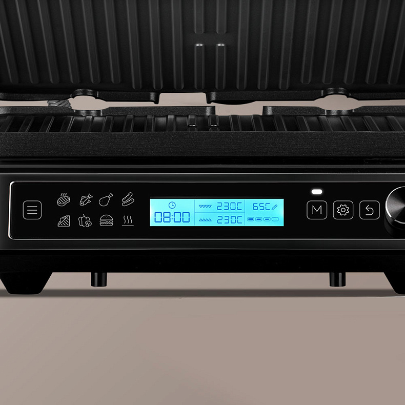 С одной стороны панели плоские, с другой — рифленые. Гладкая сторона заменит сковороду и отлично подходит для яичницы, бекона, тостов, драников, оладий или сырников. А рифленая — для мяса, рыбы и овощей с хрустящей корочкой. Гриль можно раскрыть на 180° и использовать как барбекю — готовить сразу на двух рабочих поверхностях. С GM306 разнообразить ежедневное меню легко.