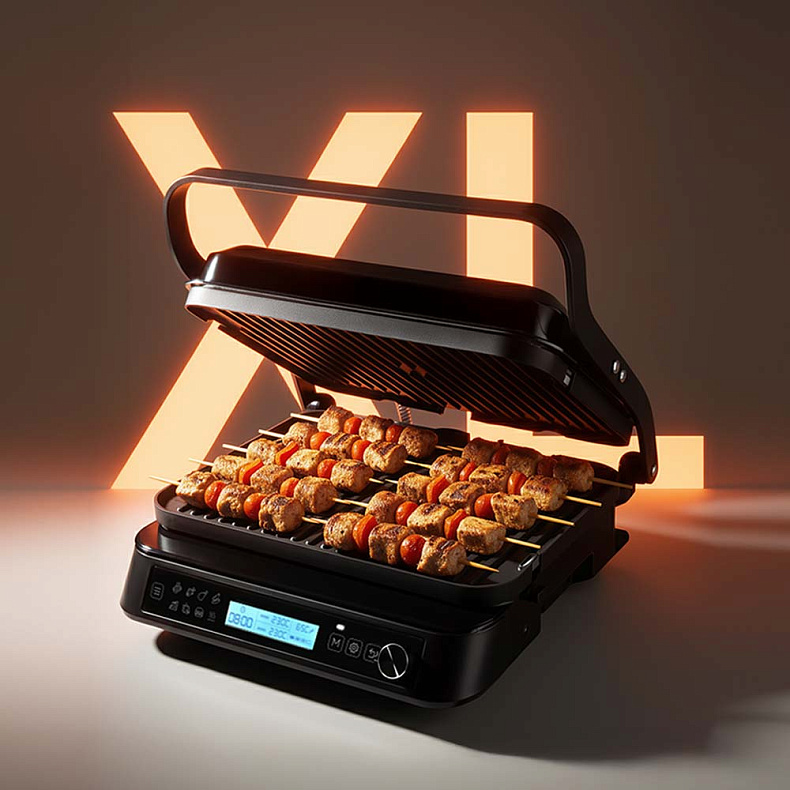GM306 — самый большой гриль в линейке REDMOND. Его панели увеличены на 20% по сравнению с другими моделями бренда. Больше площадь — больше возможностей. Готовьте 10 порций мяса или разные блюда на открытых панелях одновременно — идеально для больших компаний, семейных ужинов и быстрых приемов гостей.