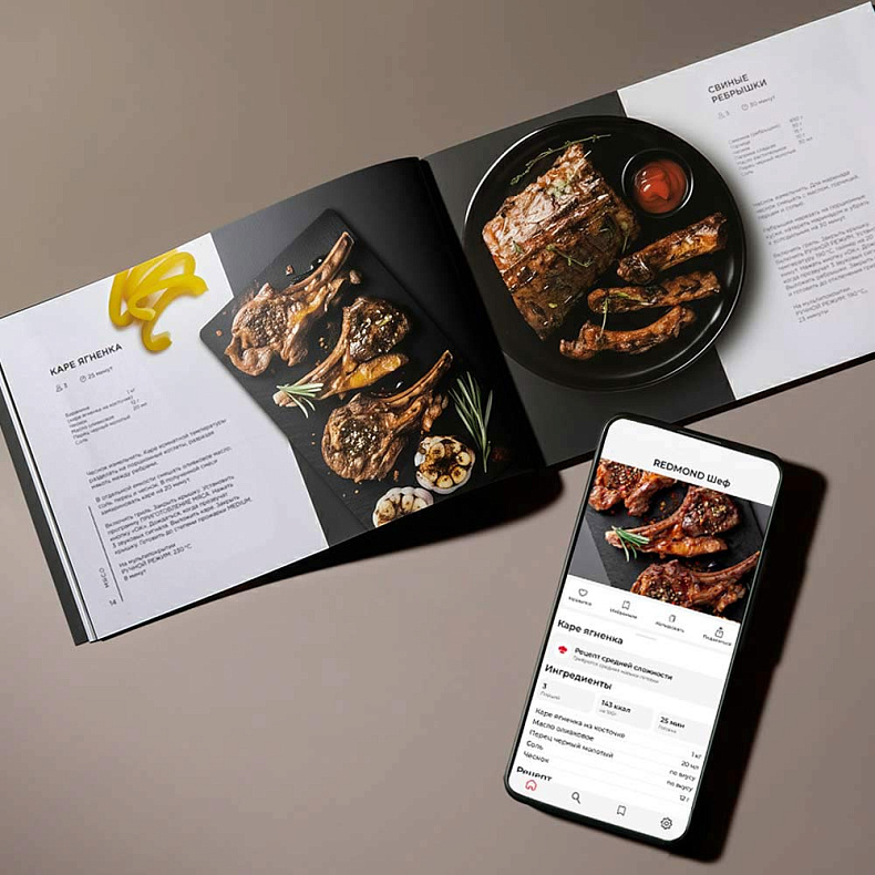 В комплекте идет книга рецептов, составленная нашими поварами специально для РЕДМОНД GM308. Результат будет отличным, даже если вы готовите на гриле впервые. База из 20 000 рецептов для разных устройств в приложении REDMOND Шеф поможет, когда нужно быстро придумать ужин из того, что есть в холодильнике