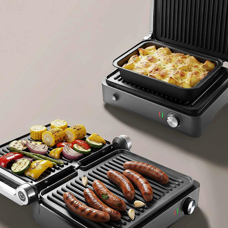 GM308 заменяет гриль, духовку и барбекю и подходит для различных кулинарных задач. Удобно готовить блюда на любой вкус с минимальными усилиями.