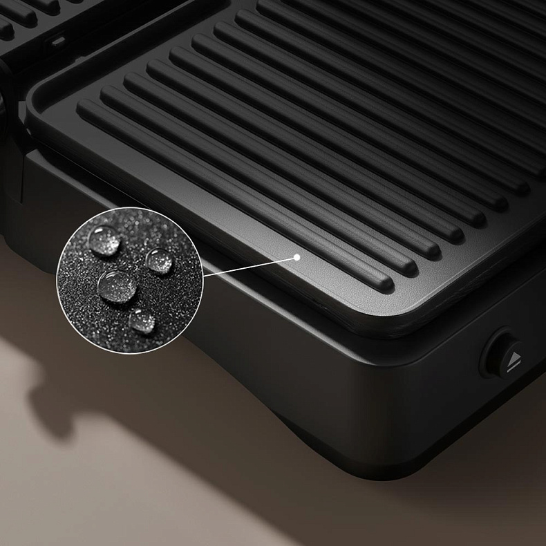 На панели гриля нанесено фирменное антипригарное покрытие с минеральными частицами Mineral Pro. Оно отличается повышенной прочностью и износостойкостью. Благодаря этому при жарке можно почти не смазывать поверхность маслом. Блюда получаются более полезными и диетическими.