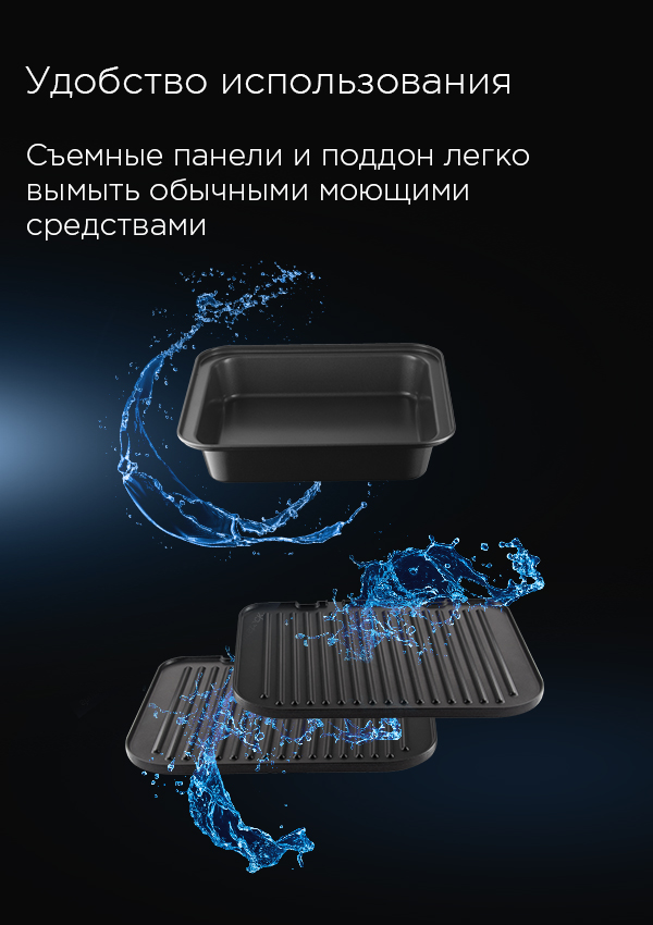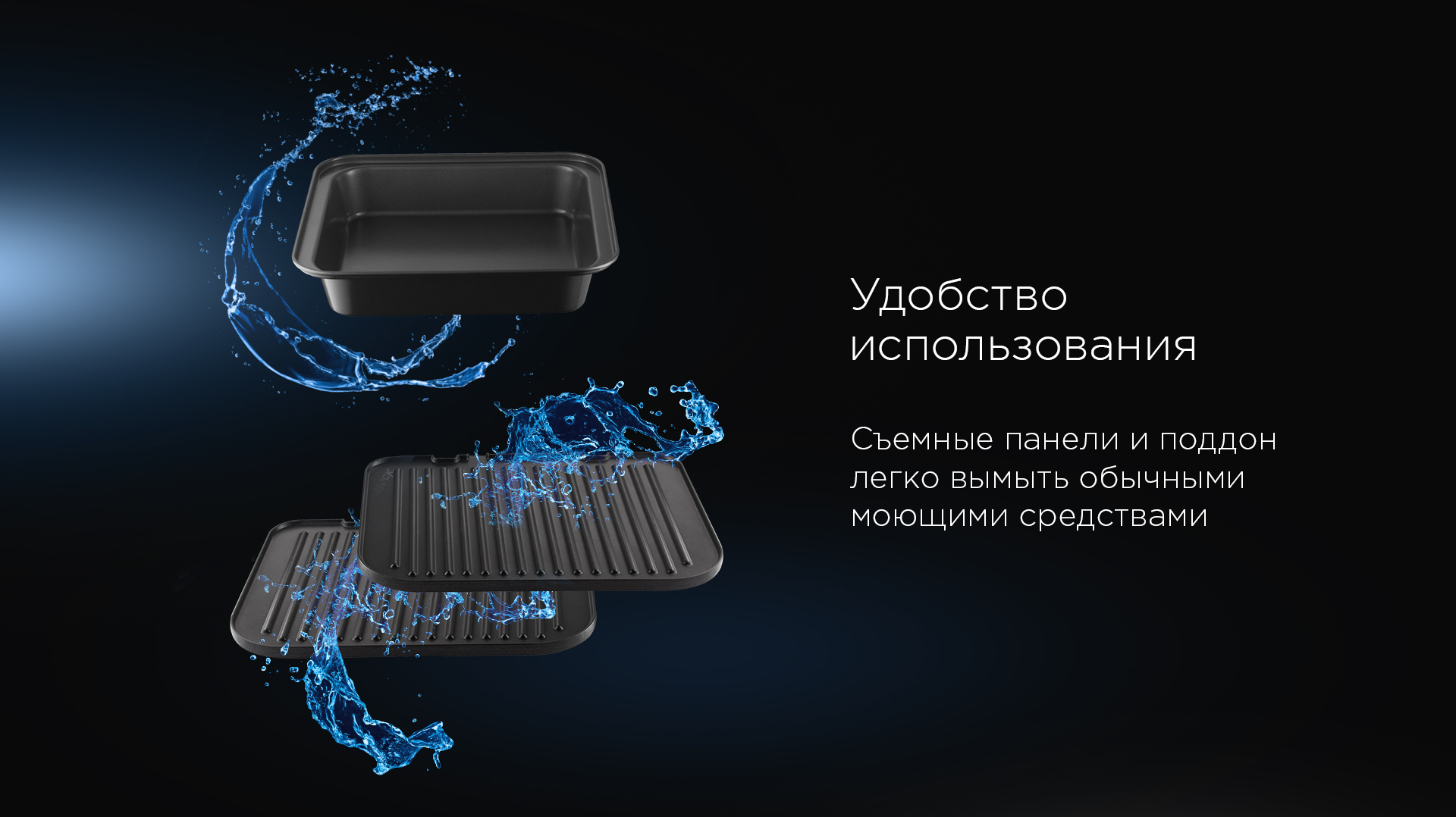 Защитить панели от повреждений и продлить срок их службы поможет универсальное Мультипокрытие EcoGlass*. Оно выдерживает до 200 циклов жарки, сохраняет вкус и полезные свойства продуктов.