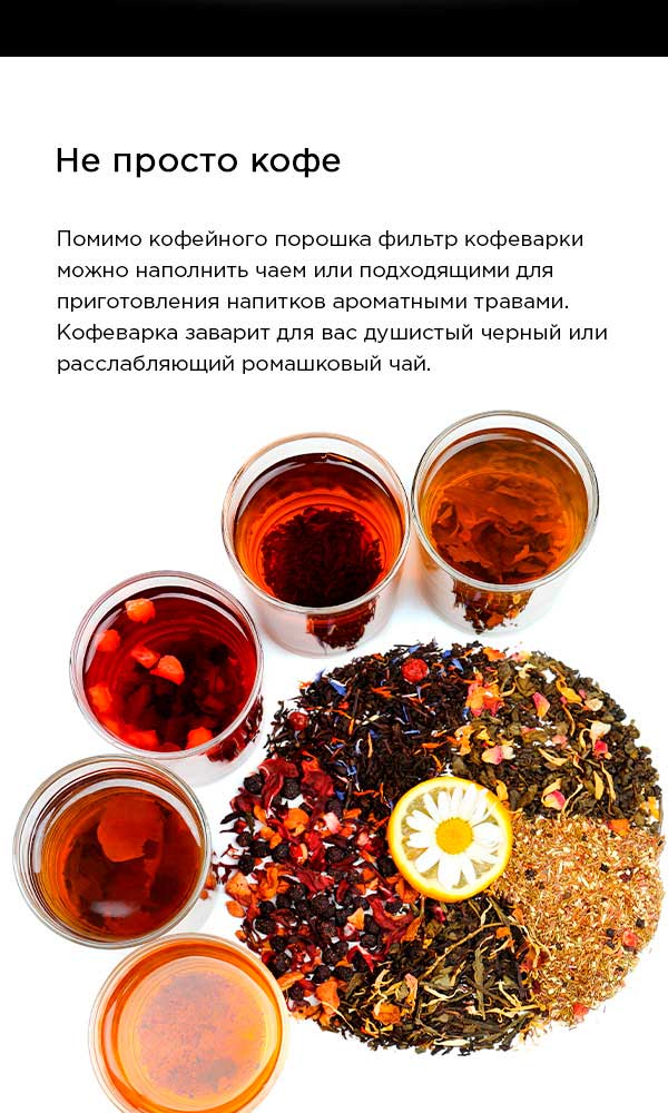 Чудесный аппарат, и не столько для приготовления кофе, как не странно. Мне нравится заваривать чай. С кусочками фруктов и с добавкой ароматных трав. Получается гораздо вкуснее чем в обычном чайнике.