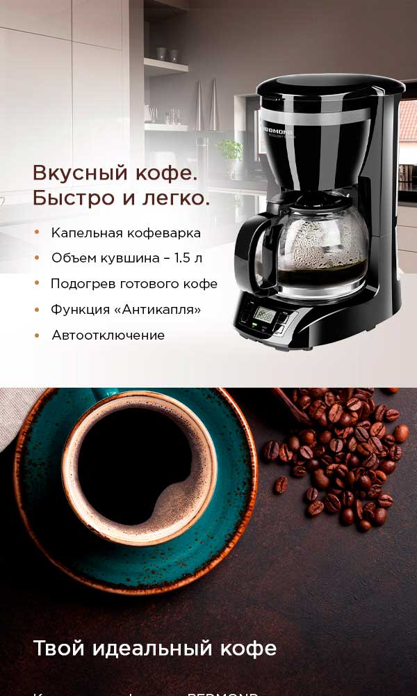 Кофеварки REDMOND. Крепкая любовь к кофе.