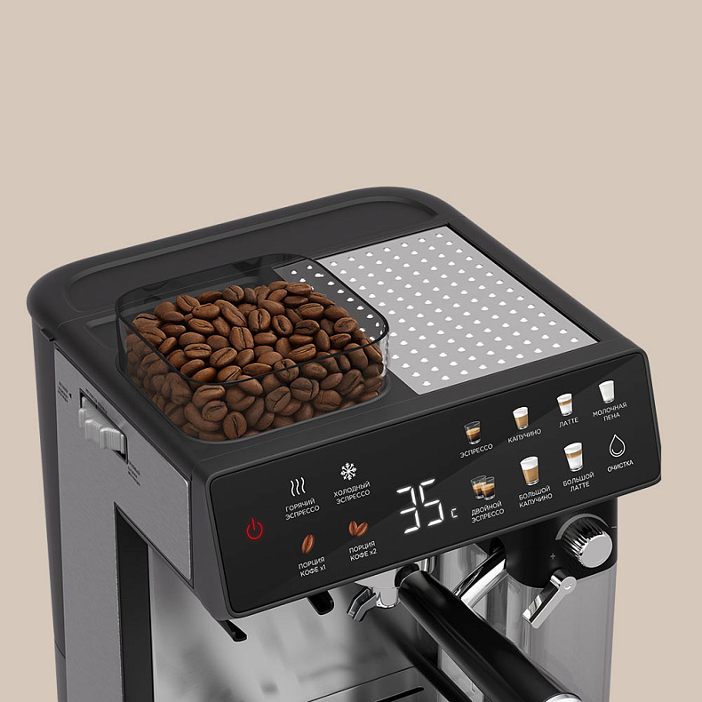 Кофейная станция позволит не только начать утро с бодрящего эспрессо, капучино или латте, но и освежиться айс-кофе в жаркий день. С CM738 вы сможете приготовить: