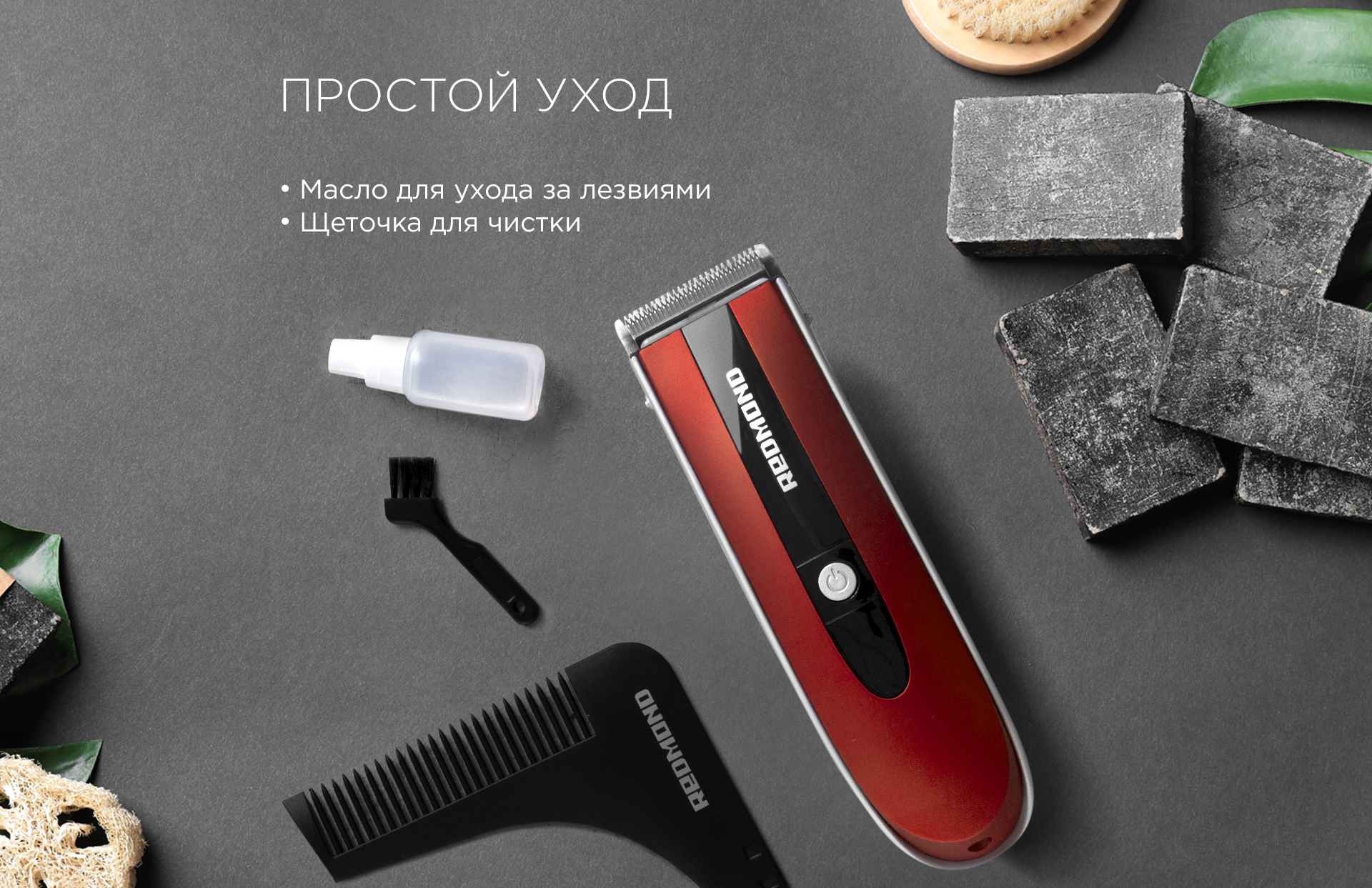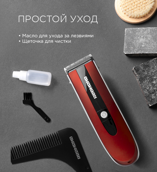 В комплект RHC-6201 входит масло для регулярного ухода за лезвиями, а также удобная щеточка, которая позволяет эффективно удалить волосы и пыль из насадок и лезвий прибора.