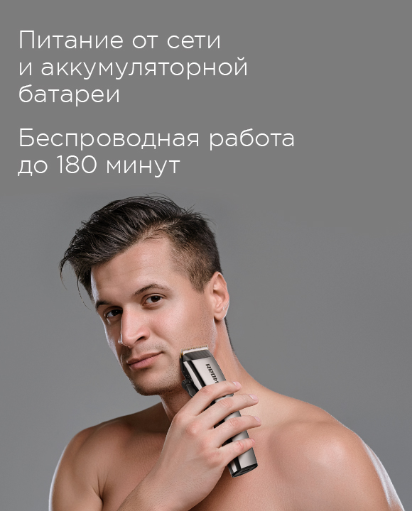 В машинке REDMOND также предусмотрено питание от сети. Если аккумулятор сел, а вы не успели завершить стрижку, просто подключите машинку к розетке и продолжите работу.