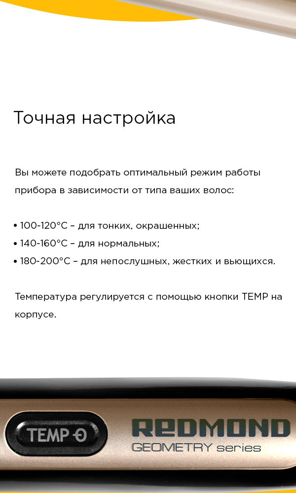 В зависимости от типа ваших волос вы можете подобрать идеальную температуру нагрева, которая отображается на компактном ЖК-дисплее. В плойке предусмотрены шесть температурных режимов и выбор точной температуры в диапазоне от 100 до 200°С.