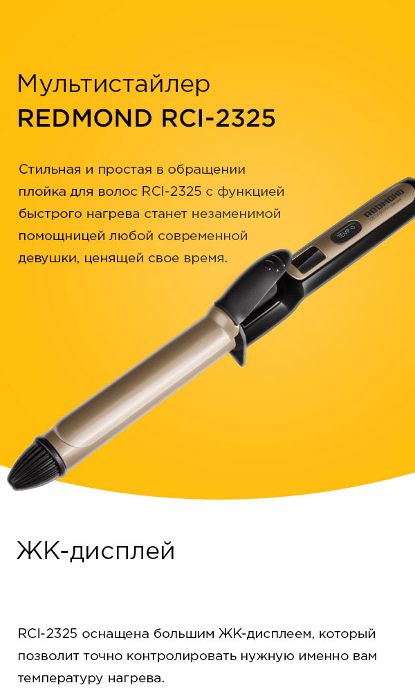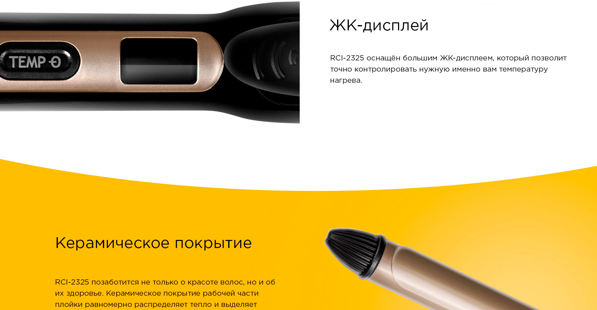 Стильная и простая в обращении плойка для волос RCI-2325 с функцией быстрого нагрева станет незаменимой помощницей любой современной девушки, ценящей свое время.