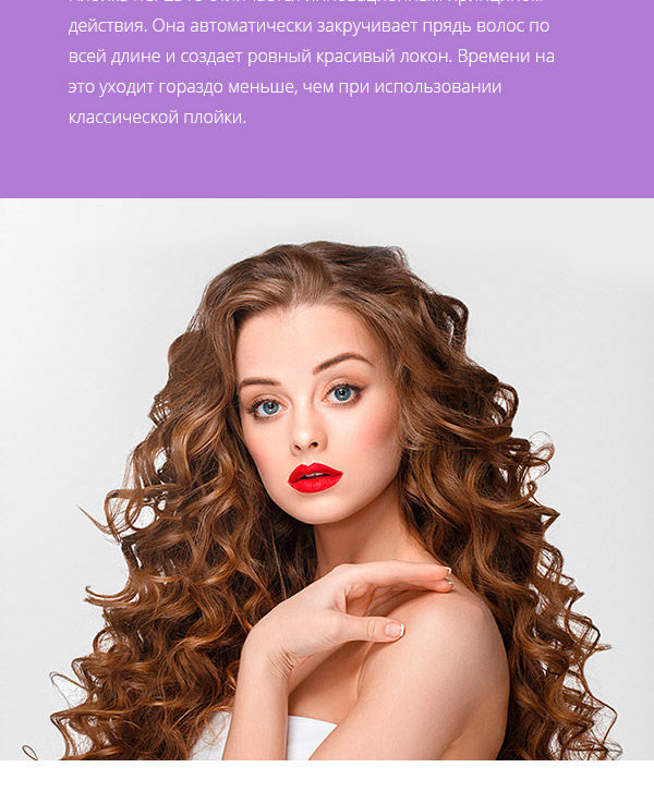 Данная плойка не подходит девушкам с короткой стрижкой. А вот остальные по праву оценят , она все сделает за вас. Очень удобно и быстро.