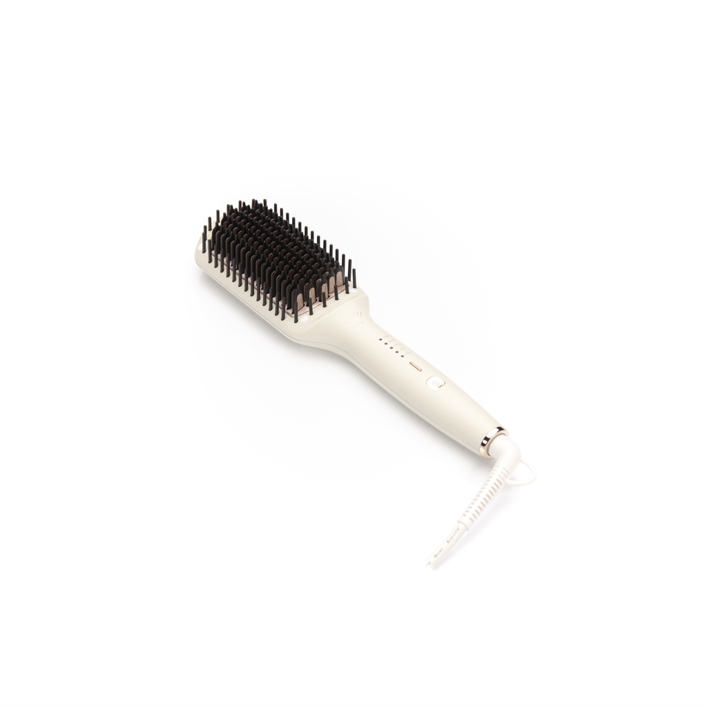 Гладкие зубцы покрыты щадящим волосы материалом — керамикой. Зубцы по всей расческе нагреваются равномерно, что позволяет быстро и бережно приводить прическу в порядок.