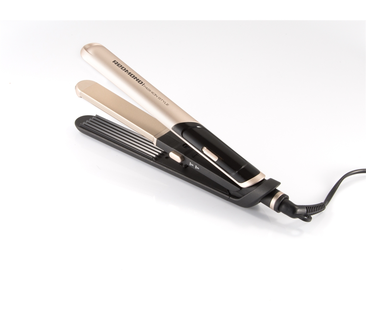 В отличие от классических стайлеров, у RCI-2331 нет сменных пластин. Конструкция прибора предусматривает сразу две рабочие секции. Нужно выпрямить волосы? Просто закройте с помощью фиксатора панель гофре и пользуйтесь стайлером как утюжком. Волосы стали достаточно прямыми, но укладке не хватает объема? Достаточно открыть секцию гофре и слегка гофрировать волосы у корней для придания им объема.