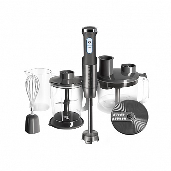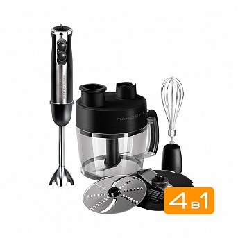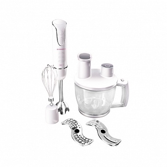 Измельчитель идет в комплекте с чашей, которая оборудована несколькими ножами и насадками: стандартный набор — терка и шинковка. Подойдет тем, кому необходимо только измельчать продукты, например, готовить суп-пюре, пюреобразные каши или продукты детского питания.