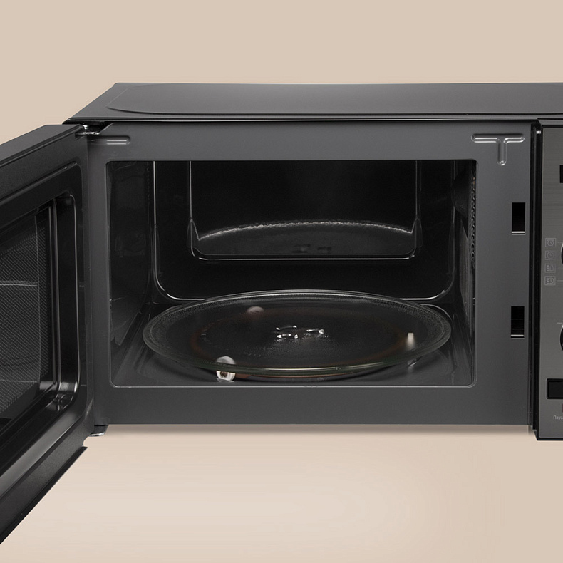 Компактный корпус позволит разместить микроволновку даже на небольшой кухне. При этом вместительная камера подойдет и для разогрева ужина, и для приготовления горячих бутербродов, и для разморозки крупных продуктов.