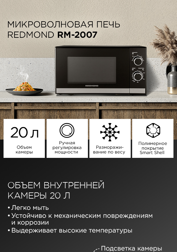 Микроволновая печь REDMOND RM-2007 - фото - купить в интернет-магазине Редмонд