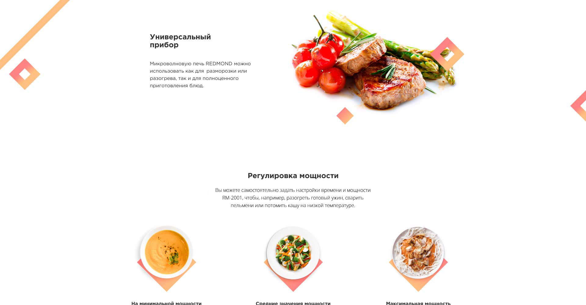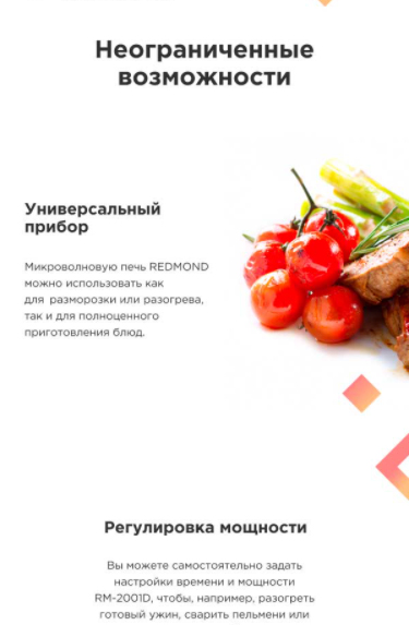 Микроволновую печь REDMOND можно использовать как для разморозки или разогрева, так и для полноценного приготовления блюд.