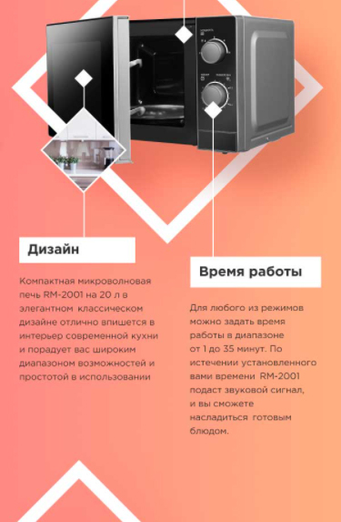 Микроволновая печь RM-2001 – это экономия времени, пространства и всегда блестящий результат приготовления!