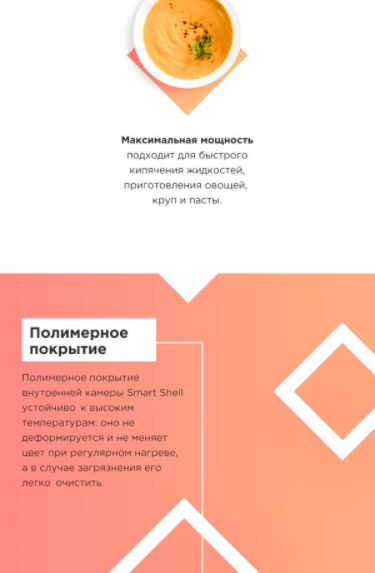 Полимерное покрытие внутренней камеры Smart Shell устойчиво к высоким температурам: оно не деформируется и не меняет цвет при регулярном нагреве, а в случае загрязнения его легко очистить.